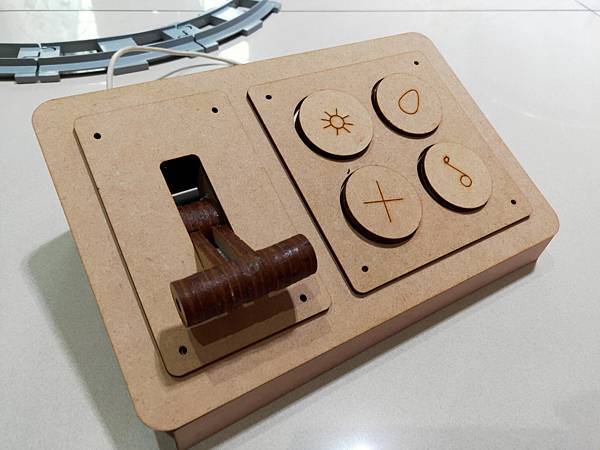 之前買了一組得寶的火車,小朋友玩的很開心,後來發現可以用藍芽app進行控制,可是我又不想讓小朋友玩手機,於是就決定要實體化!